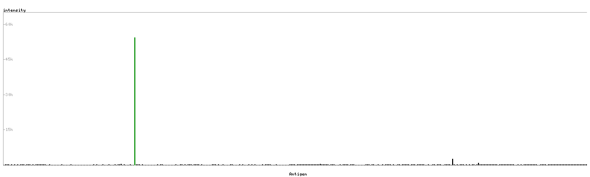 The curve in blue displays the predicted antigenicity i.e. the tendency for different regions of the protein to generate an immune response, with peak regions being predicted to be more antigenic.The curve shows average values based on a sliding window approach using an in-house propensity scale. (read more).