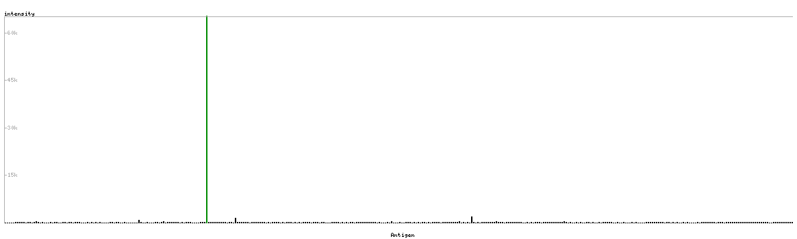 The curve in blue displays the predicted antigenicity i.e. the tendency for different regions of the protein to generate an immune response, with peak regions being predicted to be more antigenic.The curve shows average values based on a sliding window approach using an in-house propensity scale. (read more).