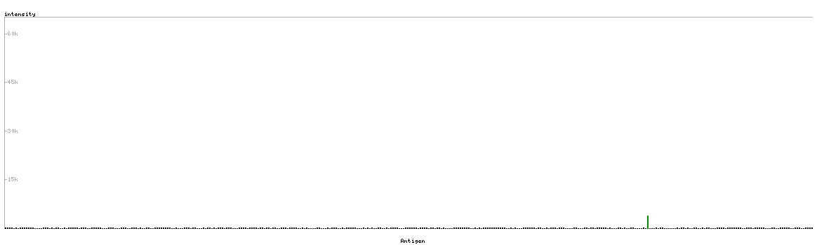 At the top of the view, the position of the antigen (identified by the corresponding HPA identifier) is shown as a green bar. A yellow triangle on the bar indicates a <100% sequence identity to the protein target.