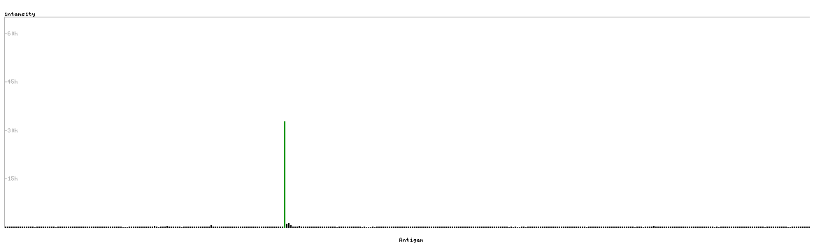 The curve in blue displays the predicted antigenicity i.e. the tendency for different regions of the protein to generate an immune response, with peak regions being predicted to be more antigenic.The curve shows average values based on a sliding window approach using an in-house propensity scale. (read more).