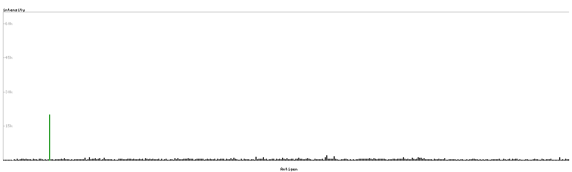 The curve in blue displays the predicted antigenicity i.e. the tendency for different regions of the protein to generate an immune response, with peak regions being predicted to be more antigenic.The curve shows average values based on a sliding window approach using an in-house propensity scale. (read more).