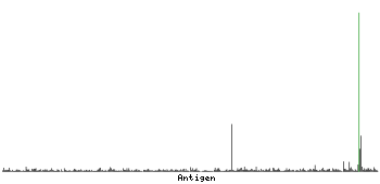 At the top of the view, the position of the antigen (identified by the corresponding HPA identifier) is shown as a green bar. A yellow triangle on the bar indicates a <100% sequence identity to the protein target.