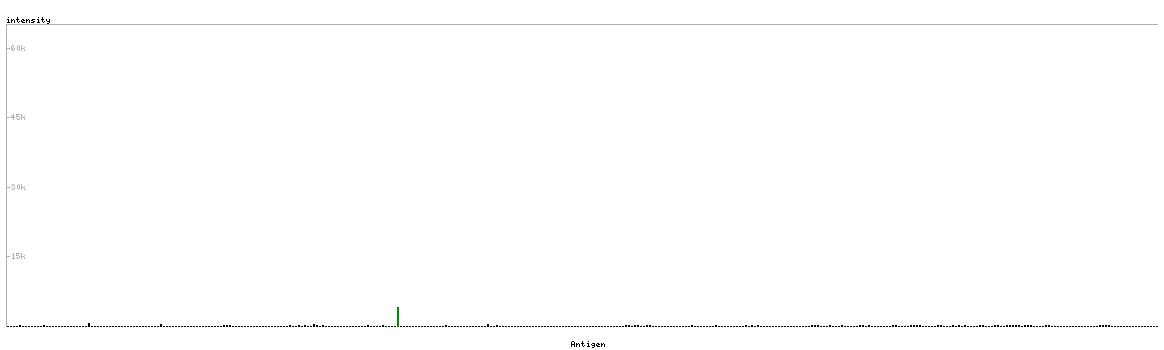At the top of the view, the position of the antigen (identified by the corresponding HPA identifier) is shown as a green bar. A yellow triangle on the bar indicates a <100% sequence identity to the protein target.