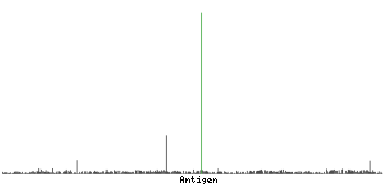 At the top of the view, the position of the antigen (identified by the corresponding HPA identifier) is shown as a green bar. A yellow triangle on the bar indicates a <100% sequence identity to the protein target.