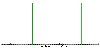 At the top of the view, the position of the antigen (identified by the corresponding HPA identifier) is shown as a green bar. A yellow triangle on the bar indicates a <100% sequence identity to the protein target.