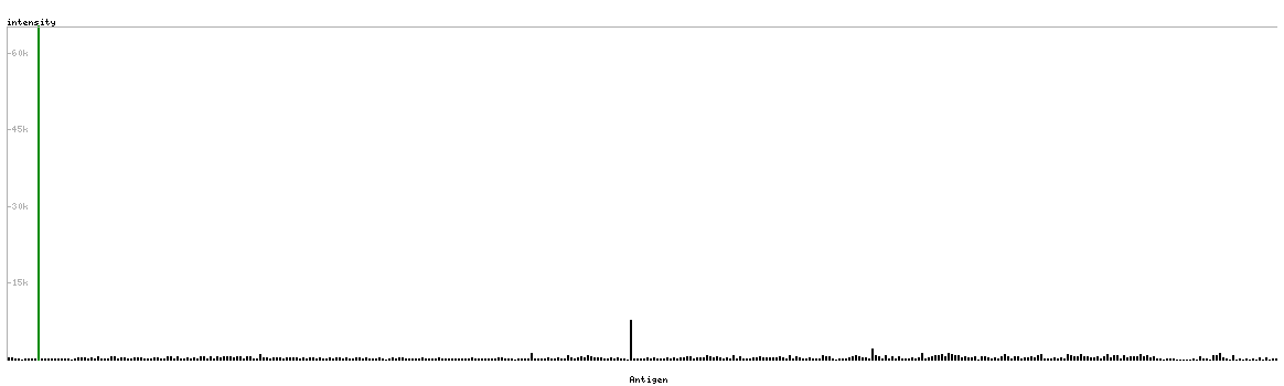 The curve in blue displays the predicted antigenicity i.e. the tendency for different regions of the protein to generate an immune response, with peak regions being predicted to be more antigenic.The curve shows average values based on a sliding window approach using an in-house propensity scale. (read more).