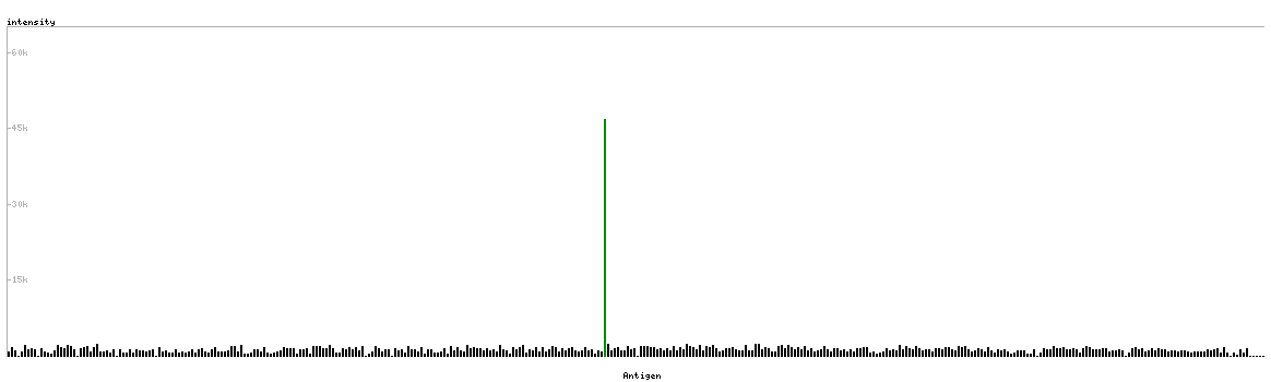 The curve in blue displays the predicted antigenicity i.e. the tendency for different regions of the protein to generate an immune response, with peak regions being predicted to be more antigenic.The curve shows average values based on a sliding window approach using an in-house propensity scale. (read more).