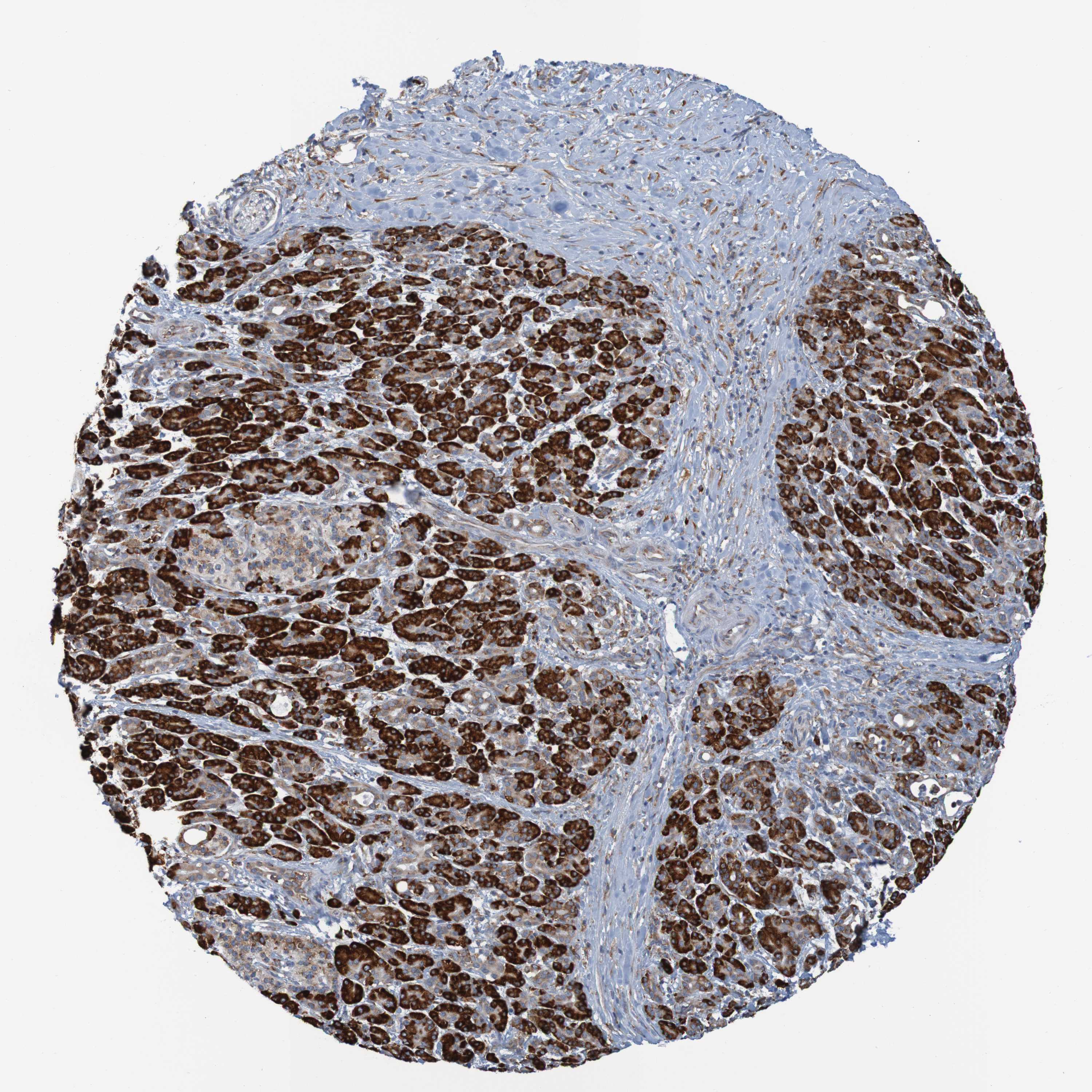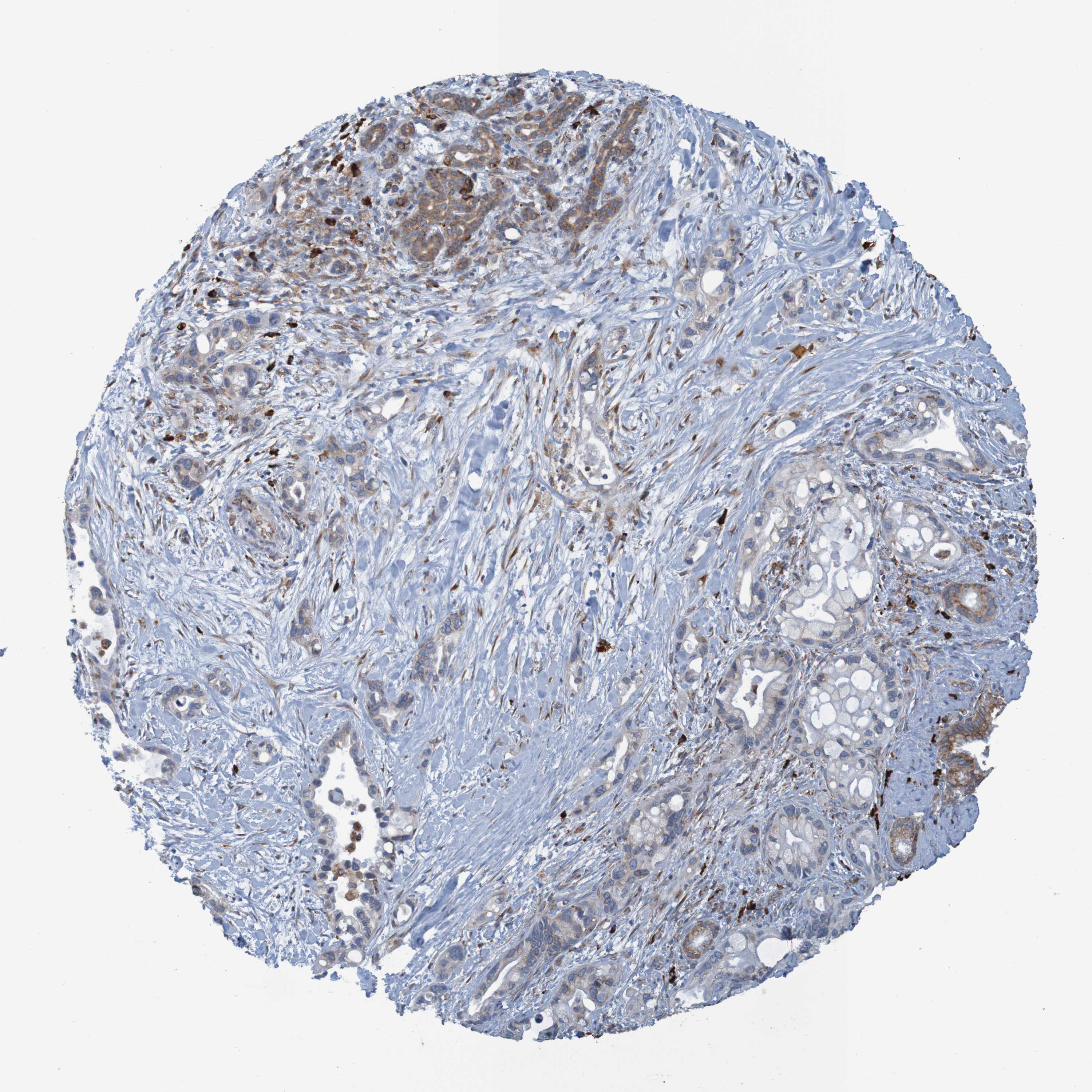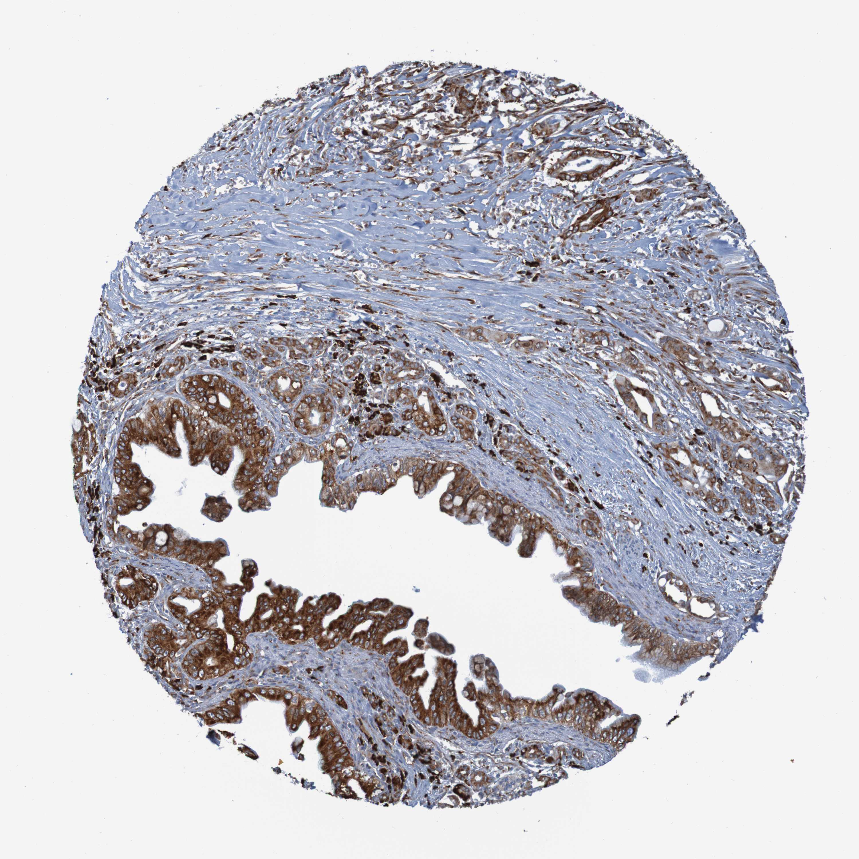 Ascending - the staining intensity is stronger in apical enterocytes (towards the lumen) compared to enterocytes in the crypts (gland based)