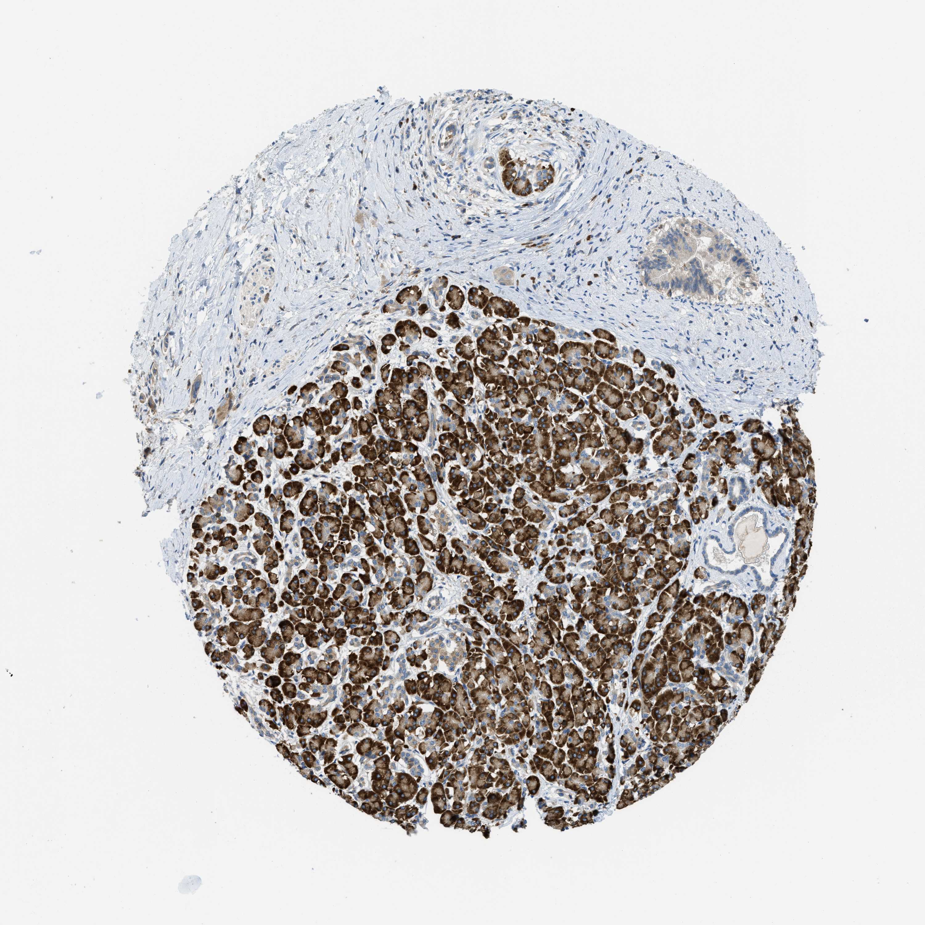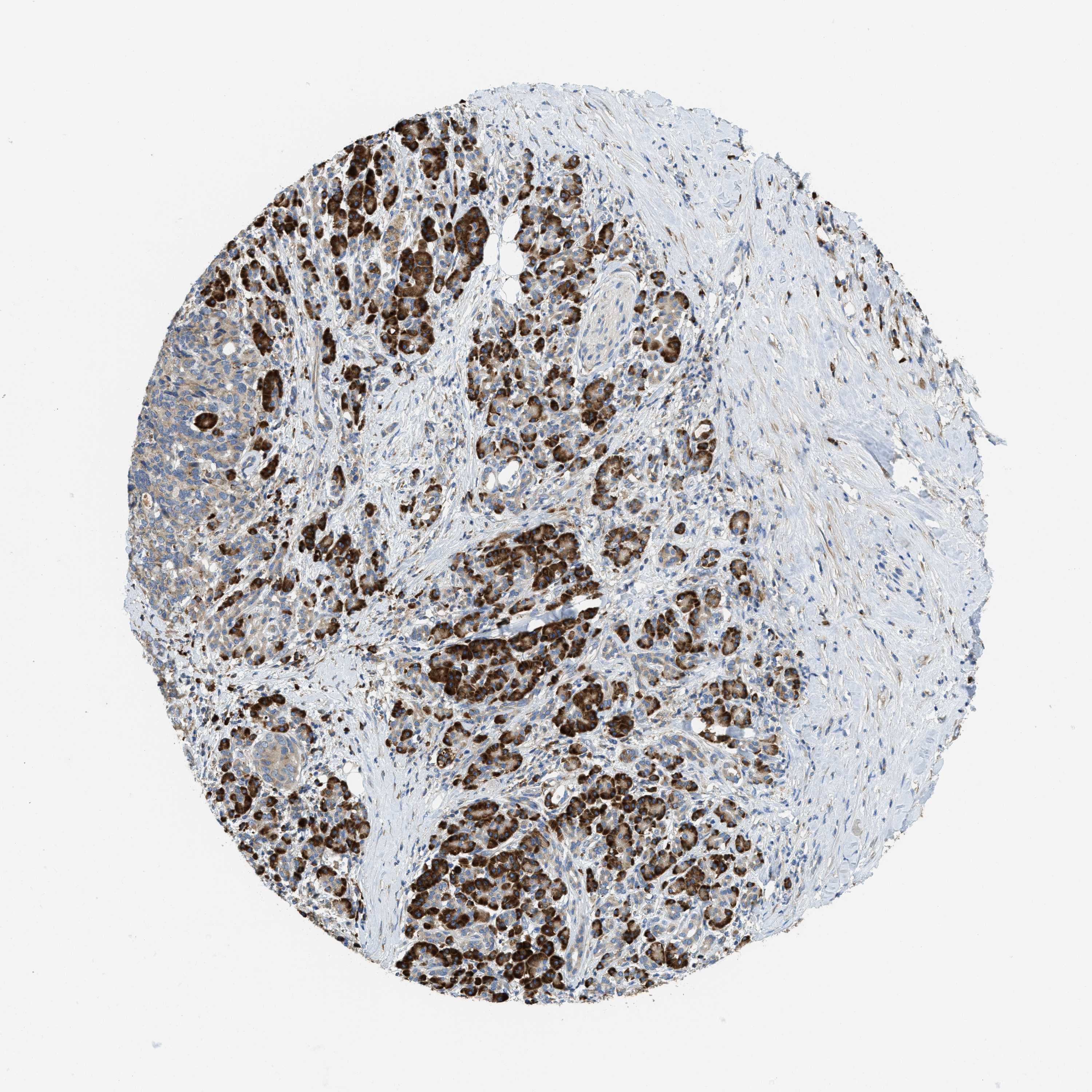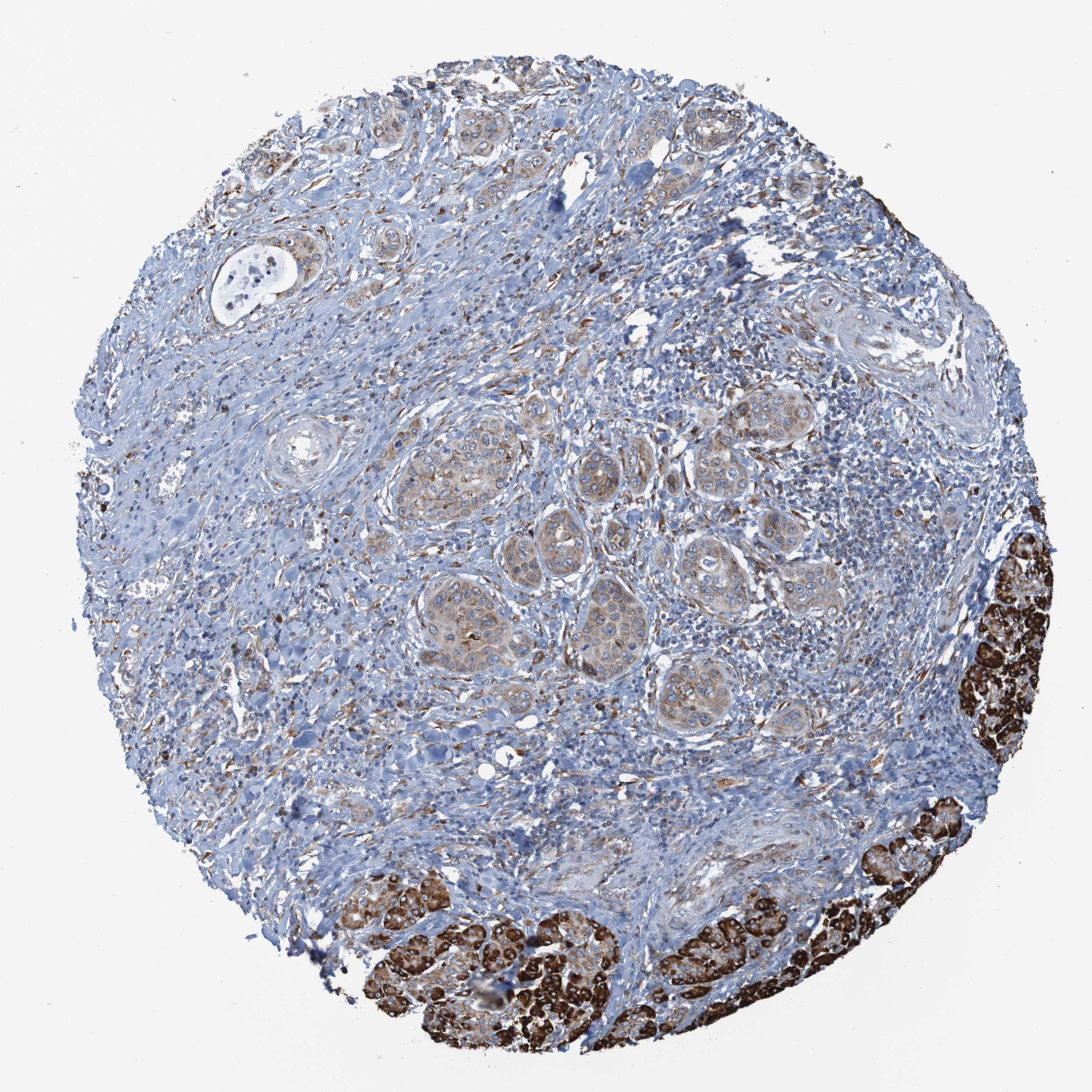 Antibody staining in the annotated cell types in the current human tissue is reported as not detected, low, medium, or high, based on conventional immunohistochemistry profiling in selected tissues. This score is based on the combination of the staining intensity and fraction of stained cells. Each image is clickable and will lead to virtual microscopy that enables deeper exploration of all samples and also displays staining intensity scores, fraction scores and subcellular localization as well as patient and tissue information for each sample.