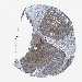 Antibody staining in the annotated cell types in the current human tissue is reported as not detected, low, medium, or high, based on conventional immunohistochemistry profiling in selected tissues. This score is based on the combination of the staining intensity and fraction of stained cells. Each image is clickable and will lead to virtual microscopy that enables deeper exploration of all samples and also displays staining intensity scores, fraction scores and subcellular localization as well as patient and tissue information for each sample.
