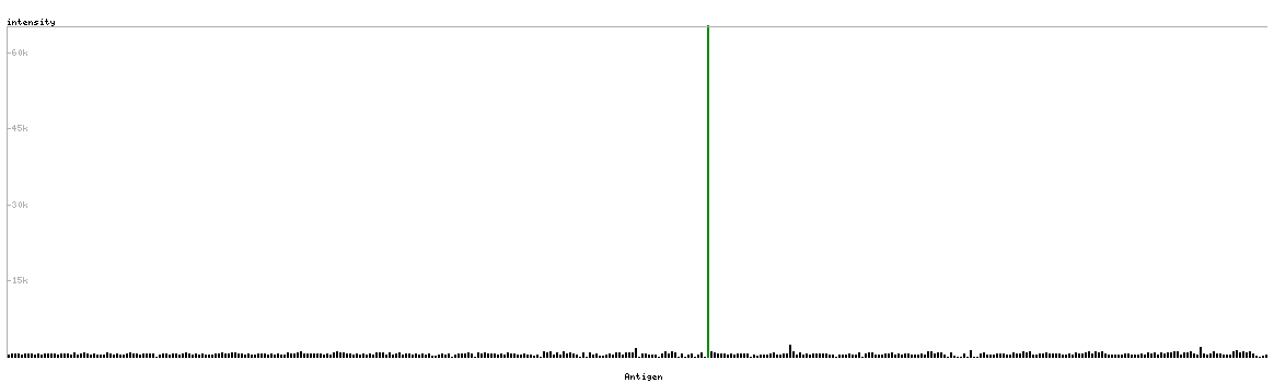 The curve in blue displays the predicted antigenicity i.e. the tendency for different regions of the protein to generate an immune response, with peak regions being predicted to be more antigenic.The curve shows average values based on a sliding window approach using an in-house propensity scale. (read more).