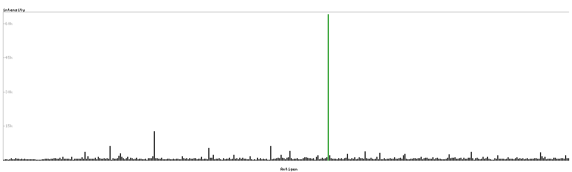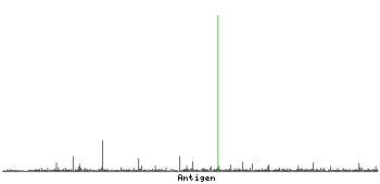 The curve in blue displays the predicted antigenicity i.e. the tendency for different regions of the protein to generate an immune response, with peak regions being predicted to be more antigenic.The curve shows average values based on a sliding window approach using an in-house propensity scale. (read more).