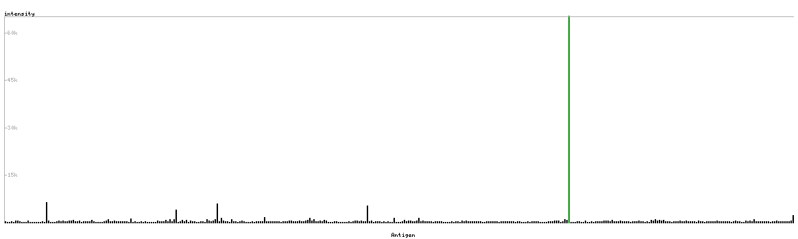 The curve in blue displays the predicted antigenicity i.e. the tendency for different regions of the protein to generate an immune response, with peak regions being predicted to be more antigenic.The curve shows average values based on a sliding window approach using an in-house propensity scale. (read more).