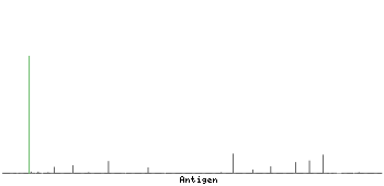At the top of the view, the position of the antigen (identified by the corresponding HPA identifier) is shown as a green bar. A yellow triangle on the bar indicates a <100% sequence identity to the protein target.