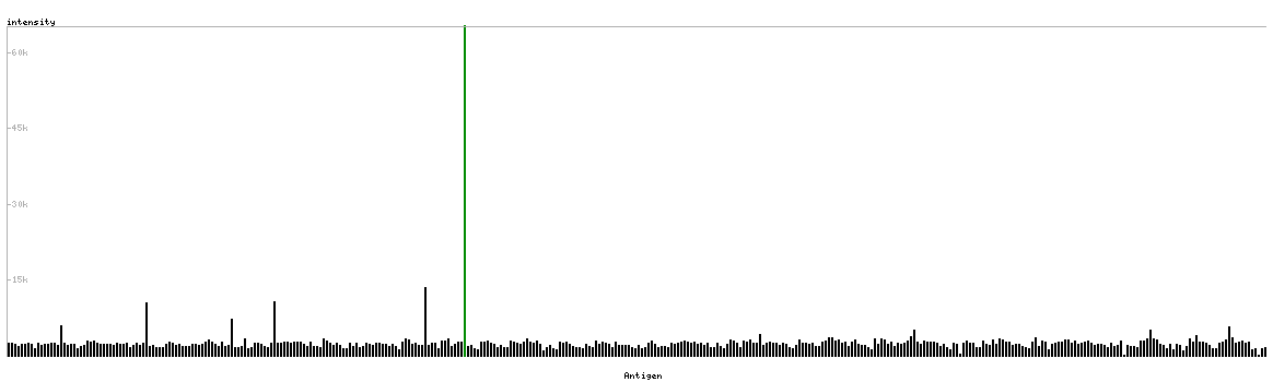 The curve in blue displays the predicted antigenicity i.e. the tendency for different regions of the protein to generate an immune response, with peak regions being predicted to be more antigenic.The curve shows average values based on a sliding window approach using an in-house propensity scale. (read more).