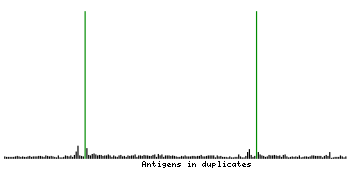 At the top of the view, the position of the antigen (identified by the corresponding HPA identifier) is shown as a green bar. A yellow triangle on the bar indicates a <100% sequence identity to the protein target.
