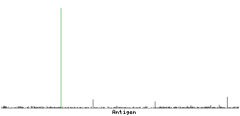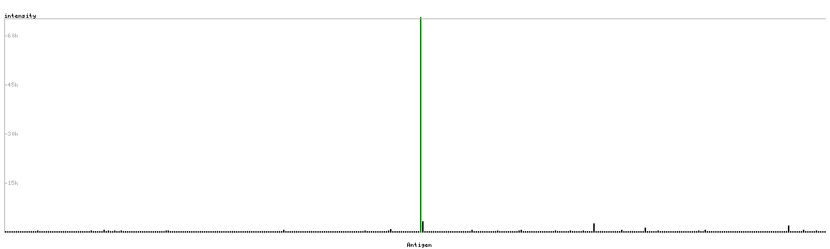 At the top of the view, the position of the antigen (identified by the corresponding HPA identifier) is shown as a green bar. A yellow triangle on the bar indicates a <100% sequence identity to the protein target.