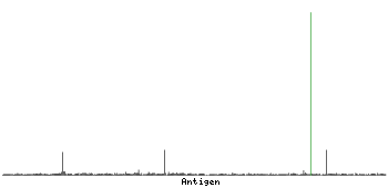 The curve in blue displays the predicted antigenicity i.e. the tendency for different regions of the protein to generate an immune response, with peak regions being predicted to be more antigenic.The curve shows average values based on a sliding window approach using an in-house propensity scale. (read more).