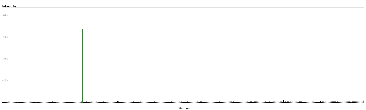 The curve in blue displays the predicted antigenicity i.e. the tendency for different regions of the protein to generate an immune response, with peak regions being predicted to be more antigenic.The curve shows average values based on a sliding window approach using an in-house propensity scale. (read more).