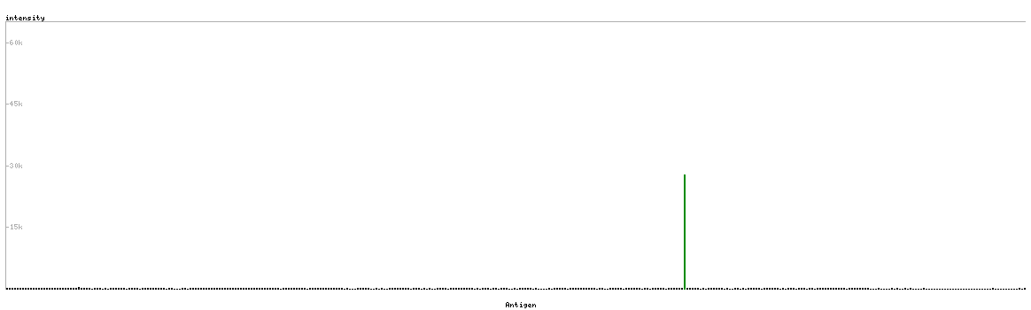 The curve in blue displays the predicted antigenicity i.e. the tendency for different regions of the protein to generate an immune response, with peak regions being predicted to be more antigenic.The curve shows average values based on a sliding window approach using an in-house propensity scale. (read more).