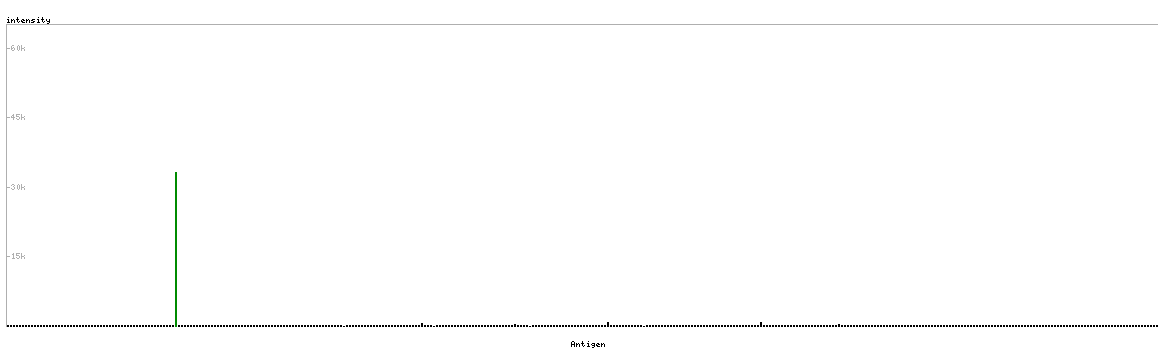 The curve in blue displays the predicted antigenicity i.e. the tendency for different regions of the protein to generate an immune response, with peak regions being predicted to be more antigenic.The curve shows average values based on a sliding window approach using an in-house propensity scale. (read more).