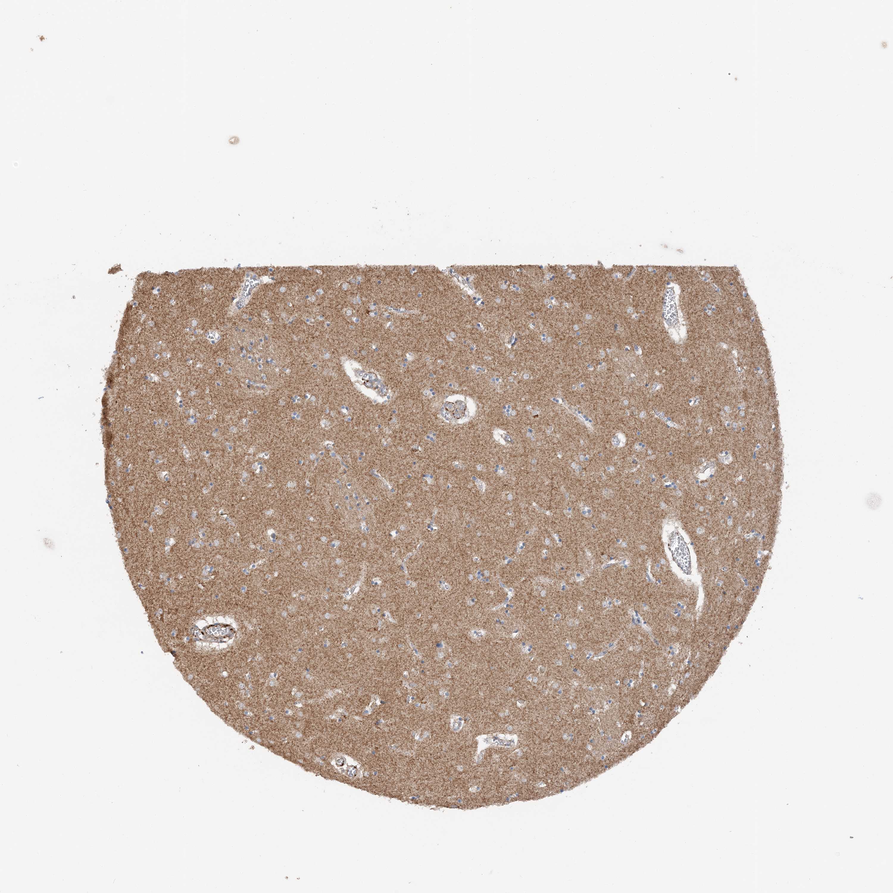 RNA-seq data obtained from pig brain is reported as nTPM. Normal distribution across the dataset is visualized with box plots, shown as median and 25th and 75th percentiles. Points are displayed as outliers if they are above or below 1.5 times the interquartile range. nTPM values of the individual samples are presented next to the box plot.