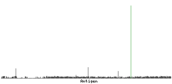 The curve in blue displays the predicted antigenicity i.e. the tendency for different regions of the protein to generate an immune response, with peak regions being predicted to be more antigenic.The curve shows average values based on a sliding window approach using an in-house propensity scale. (read more).