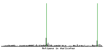 At the top of the view, the position of the antigen (identified by the corresponding HPA identifier) is shown as a green bar. A yellow triangle on the bar indicates a <100% sequence identity to the protein target.