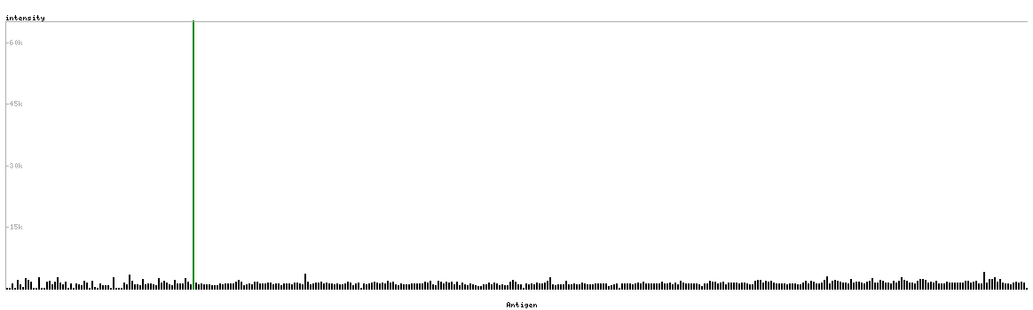 The curve in blue displays the predicted antigenicity i.e. the tendency for different regions of the protein to generate an immune response, with peak regions being predicted to be more antigenic.The curve shows average values based on a sliding window approach using an in-house propensity scale. (read more).