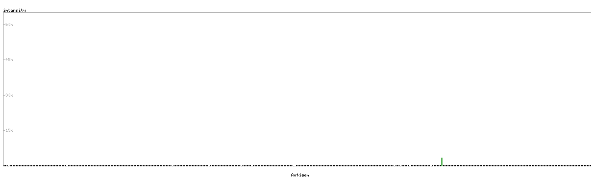 At the top of the view, the position of the antigen (identified by the corresponding HPA identifier) is shown as a green bar. A yellow triangle on the bar indicates a <100% sequence identity to the protein target.