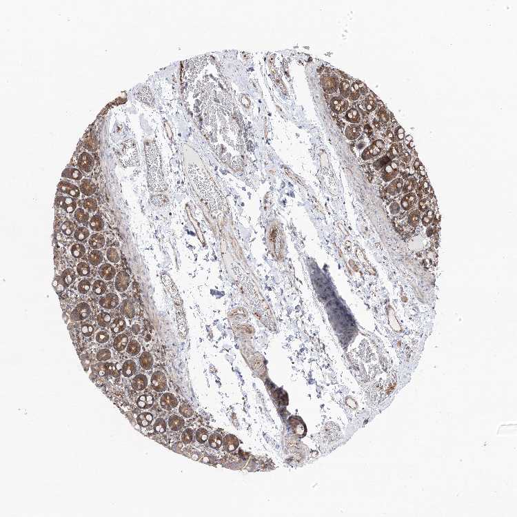 Ascending - the staining intensity is stronger in apical enterocytes (towards the lumen) compared to enterocytes in the crypts (gland based)