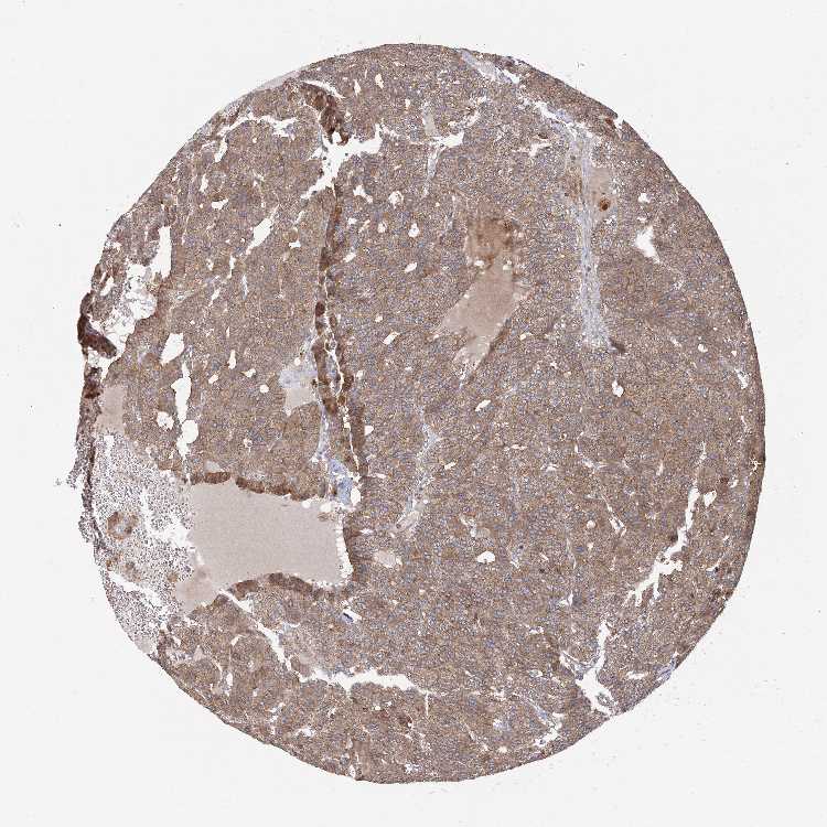 Antibody staining in the annotated cell types in the current human tissue is reported as not detected, low, medium, or high, based on conventional immunohistochemistry profiling in selected tissues. This score is based on the combination of the staining intensity and fraction of stained cells. Each image is clickable and will lead to virtual microscopy that enables deeper exploration of all samples and also displays staining intensity scores, fraction scores and subcellular localization as well as patient and tissue information for each sample.