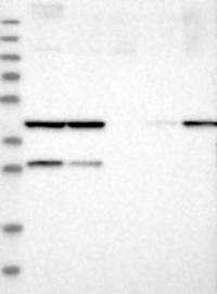 A Western blot analysis is performed on a panel of human tissues and cell lines to evaluate antibody specificity. For antibodies with unreliable result a revalidation using an over-expression lysate is performed.