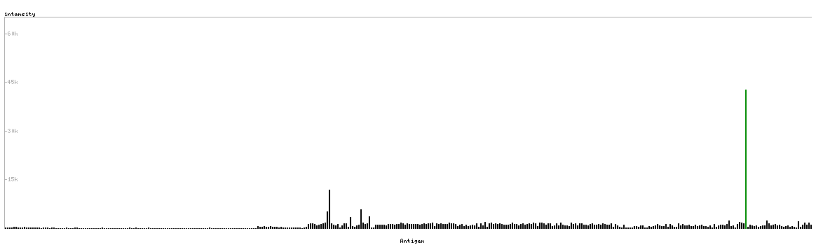 The curve in blue displays the predicted antigenicity i.e. the tendency for different regions of the protein to generate an immune response, with peak regions being predicted to be more antigenic.The curve shows average values based on a sliding window approach using an in-house propensity scale. (read more).
