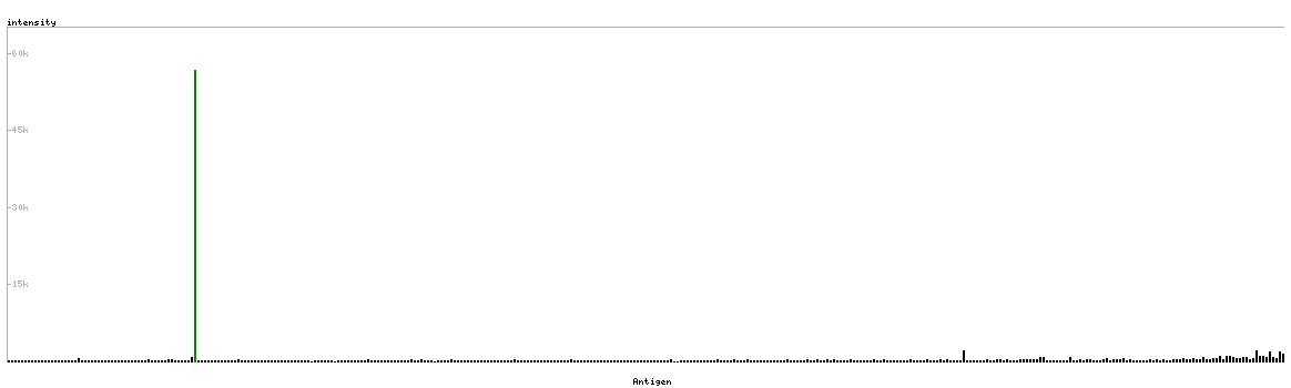 The curve in blue displays the predicted antigenicity i.e. the tendency for different regions of the protein to generate an immune response, with peak regions being predicted to be more antigenic.The curve shows average values based on a sliding window approach using an in-house propensity scale. (read more).
