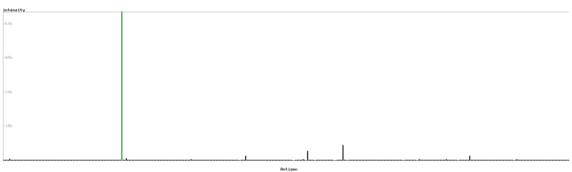 The curve in blue displays the predicted antigenicity i.e. the tendency for different regions of the protein to generate an immune response, with peak regions being predicted to be more antigenic.The curve shows average values based on a sliding window approach using an in-house propensity scale. (read more).
