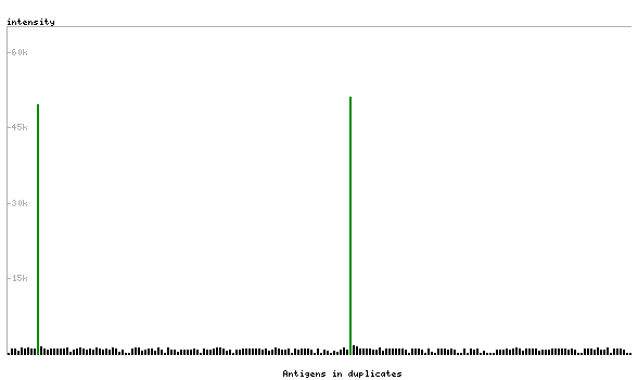 Below the antigens, the maximum percent sequence identity of the protein to all other proteins from other human genes is displayed, using a sliding window of 10 aa residues (HsID 10) or 50 aa residues (HsID 50). The region with the lowest possible identity is always selected for antigen design, with a maximum identity of 60% allowed for designing a single-target antigen (read more).
