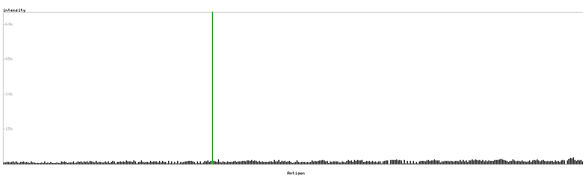 The curve in blue displays the predicted antigenicity i.e. the tendency for different regions of the protein to generate an immune response, with peak regions being predicted to be more antigenic.The curve shows average values based on a sliding window approach using an in-house propensity scale. (read more).