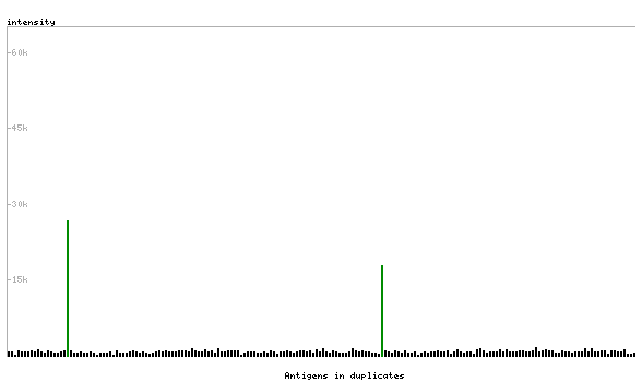 The curve in blue displays the predicted antigenicity i.e. the tendency for different regions of the protein to generate an immune response, with peak regions being predicted to be more antigenic.The curve shows average values based on a sliding window approach using an in-house propensity scale. (read more).