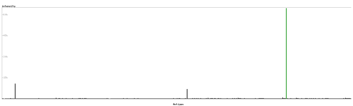The curve in blue displays the predicted antigenicity i.e. the tendency for different regions of the protein to generate an immune response, with peak regions being predicted to be more antigenic.The curve shows average values based on a sliding window approach using an in-house propensity scale. (read more).