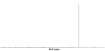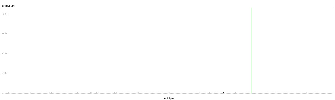 At the top of the view, the position of the antigen (identified by the corresponding HPA identifier) is shown as a green bar. A yellow triangle on the bar indicates a <100% sequence identity to the protein target.