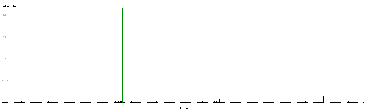 The curve in blue displays the predicted antigenicity i.e. the tendency for different regions of the protein to generate an immune response, with peak regions being predicted to be more antigenic.The curve shows average values based on a sliding window approach using an in-house propensity scale. (read more).