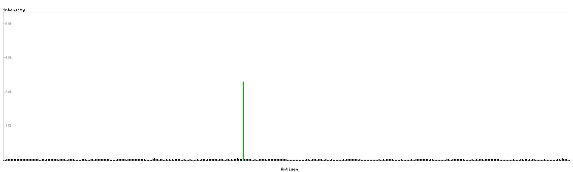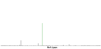 At the top of the view, the position of the antigen (identified by the corresponding HPA identifier) is shown as a green bar. A yellow triangle on the bar indicates a <100% sequence identity to the protein target.