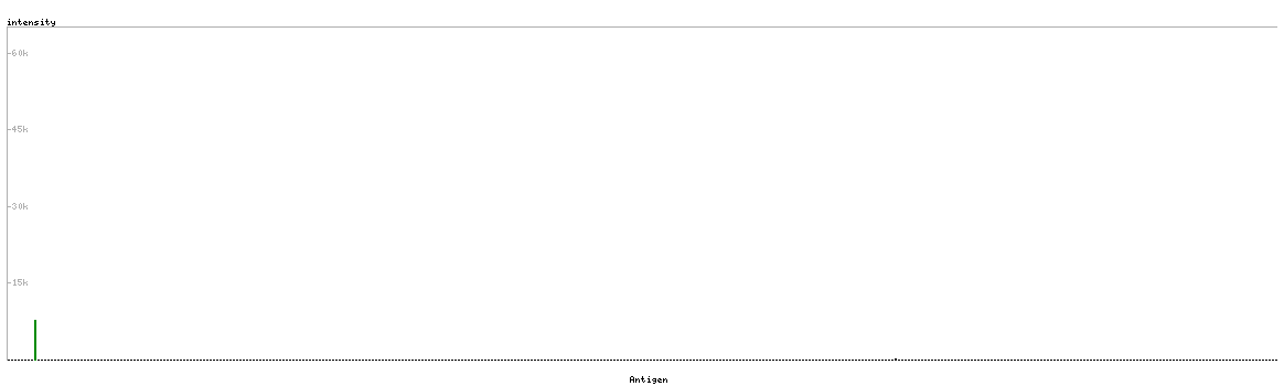 At the top of the view, the position of the antigen (identified by the corresponding HPA identifier) is shown as a green bar. A yellow triangle on the bar indicates a <100% sequence identity to the protein target.