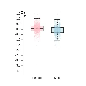Blood protein levels in 96 healthy adults (aged 50–65) measured at six visits over a two-year period, shown separately for males and females. Relative protein abundances were quantified using the proximity extension assay (PEA) with the Olink Explore HT.