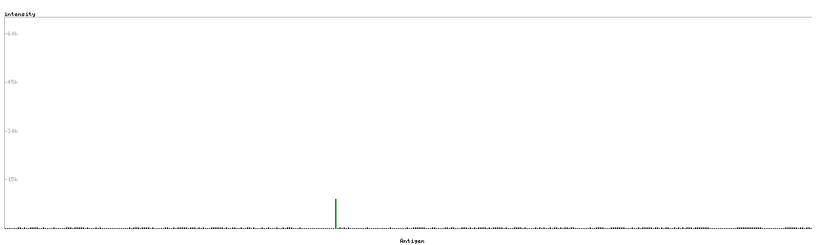 At the top of the view, the position of the antigen (identified by the corresponding HPA identifier) is shown as a green bar. A yellow triangle on the bar indicates a <100% sequence identity to the protein target.