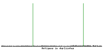 At the top of the view, the position of the antigen (identified by the corresponding HPA identifier) is shown as a green bar. A yellow triangle on the bar indicates a <100% sequence identity to the protein target.