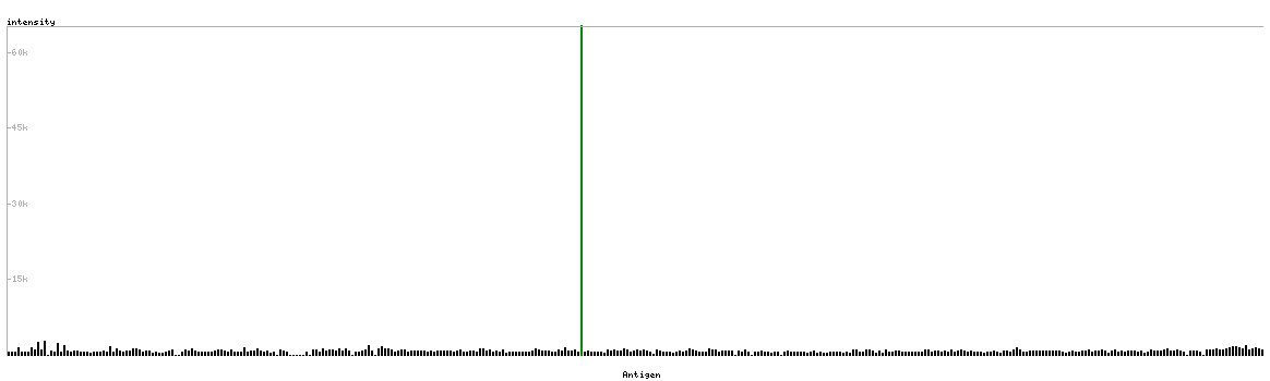 The curve in blue displays the predicted antigenicity i.e. the tendency for different regions of the protein to generate an immune response, with peak regions being predicted to be more antigenic.The curve shows average values based on a sliding window approach using an in-house propensity scale. (read more).