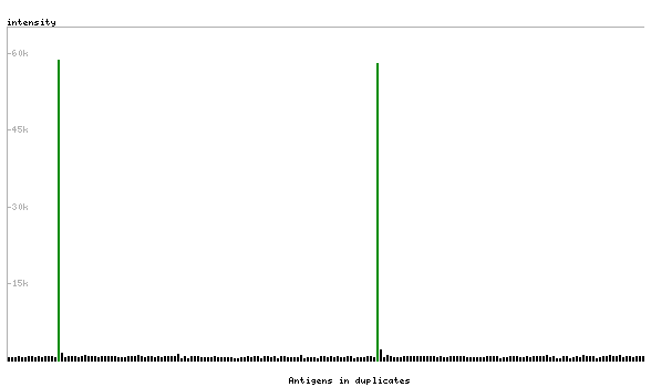 Below the antigens, the maximum percent sequence identity of the protein to all other proteins from other human genes is displayed, using a sliding window of 10 aa residues (HsID 10) or 50 aa residues (HsID 50). The region with the lowest possible identity is always selected for antigen design, with a maximum identity of 60% allowed for designing a single-target antigen (read more).