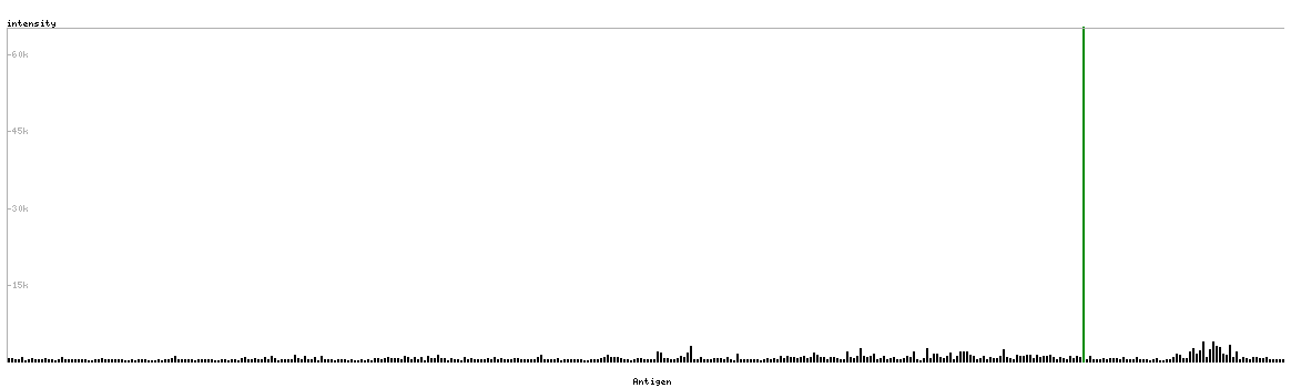 The curve in blue displays the predicted antigenicity i.e. the tendency for different regions of the protein to generate an immune response, with peak regions being predicted to be more antigenic.The curve shows average values based on a sliding window approach using an in-house propensity scale. (read more).
